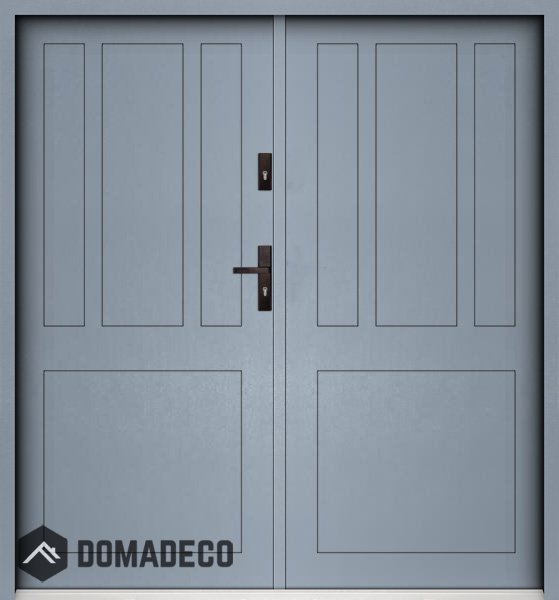 Die Türen bestehen aus Edelstahl. Im Inneren ist es mit PUR-Polyurethanschaum und Holz gefüllt. Die Türblattdicke beträgt 55 mm. Doppeldichtungssystem - Eine Dichtung befindet sich am unteren Rand des Rahmens und die andere im Lagerteil des Türblatts. Sie reduzieren Vibrationen und schützen Ihr Zuhause vor Wärmeverlust. Sie ändern ihre Lautstärke nicht unter dem Einfluss von Wetterbedingungen. Der Türrahmen hat einbruchhemmende Verstärkungen in den Scharnierteilen und Verriegelungspunkten.