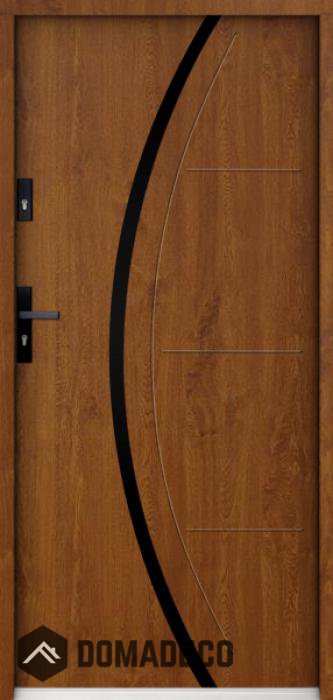 Die Türen bestehen aus Edelstahl. Im Inneren ist es mit PUR-Polyurethanschaum und Holz gefüllt. Die Türblattdicke beträgt 55 mm. Doppeldichtungssystem - Eine Dichtung befindet sich am unteren Rand des Rahmens und die andere im Lagerteil des Türblatts. Sie reduzieren Vibrationen und schützen Ihr Zuhause vor Wärmeverlust. Sie ändern ihre Lautstärke nicht unter dem Einfluss von Wetterbedingungen. Der Türrahmen hat einbruchhemmende Verstärkungen in den Scharnierteilen und Verriegelungspunkten.