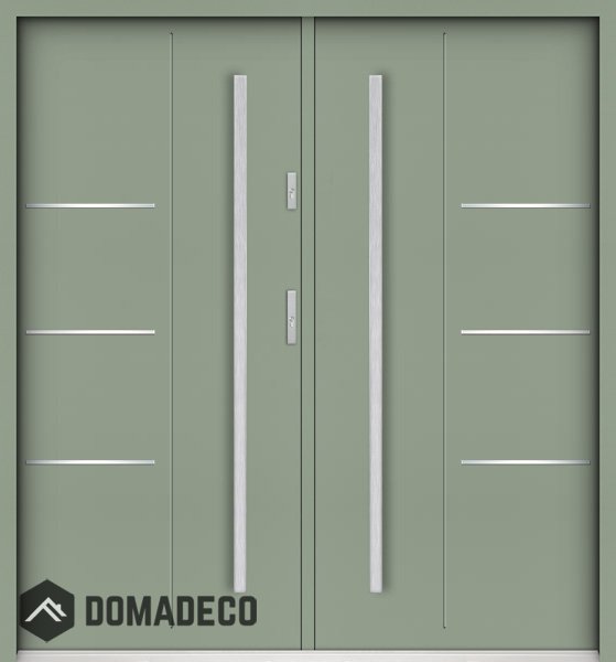 Die Türen bestehen aus Edelstahl. Im Inneren ist es mit PUR-Polyurethanschaum und Holz gefüllt. Die Türblattdicke beträgt 55 mm. Doppeldichtungssystem - Eine Dichtung befindet sich am unteren Rand des Rahmens und die andere im Lagerteil des Türblatts. Sie reduzieren Vibrationen und schützen Ihr Zuhause vor Wärmeverlust. Sie ändern ihre Lautstärke nicht unter dem Einfluss von Wetterbedingungen. Der Türrahmen hat einbruchhemmende Verstärkungen in den Scharnierteilen und Verriegelungspunkten.