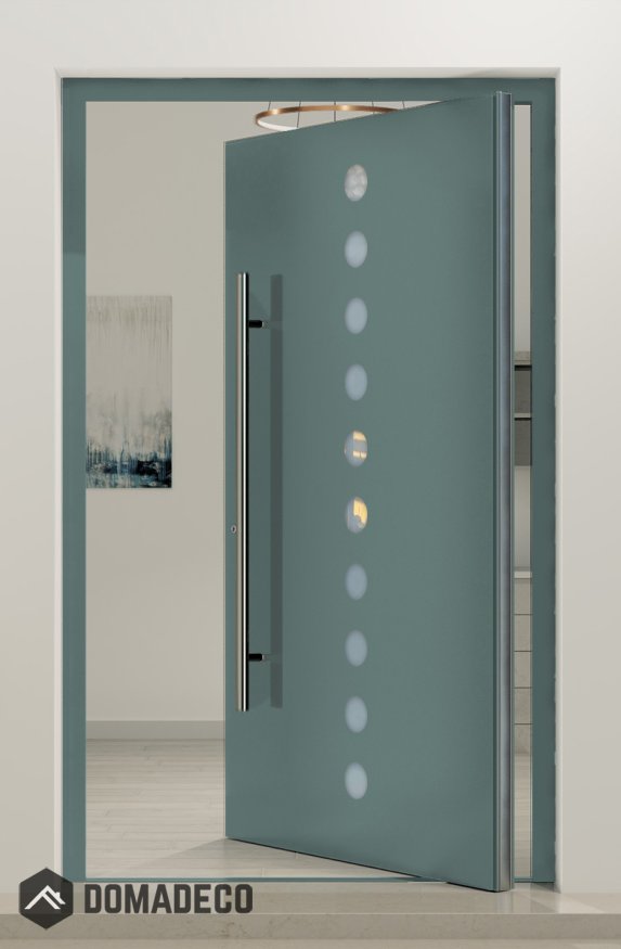 PIVOT Arlekin – große Drehtür aus Aluminium mit zehn kleinen Glaselementen
