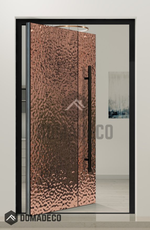 PIVOT B1 – Aluminium-Drehtür mit verkleidetem, verkupfertem Edelstahlblech