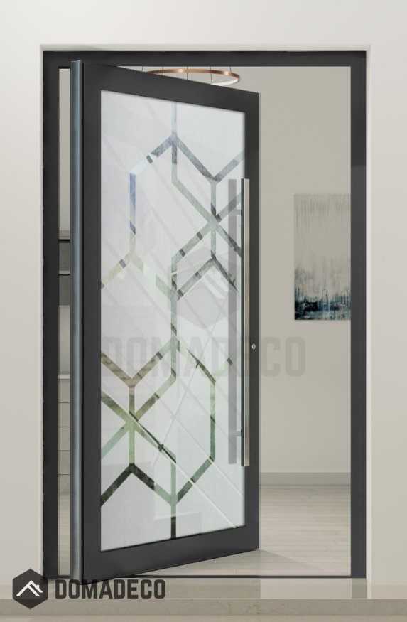 PIVOT Glass S13 - Aluminium-Drehflügeltür mattiert mit transparentem Dekor