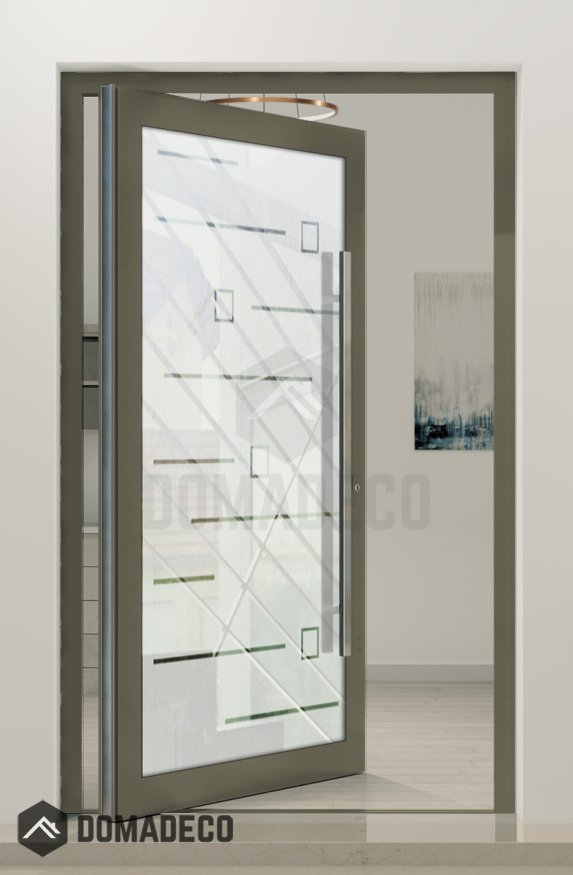 PIVOT Glass S20 - aluminum frosted pivot door with with transparent motif
