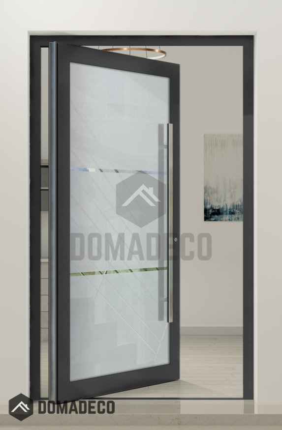 PIVOT Glass S2 - Aluminium mattierte Drehtür mit zwei transparenten Streifen