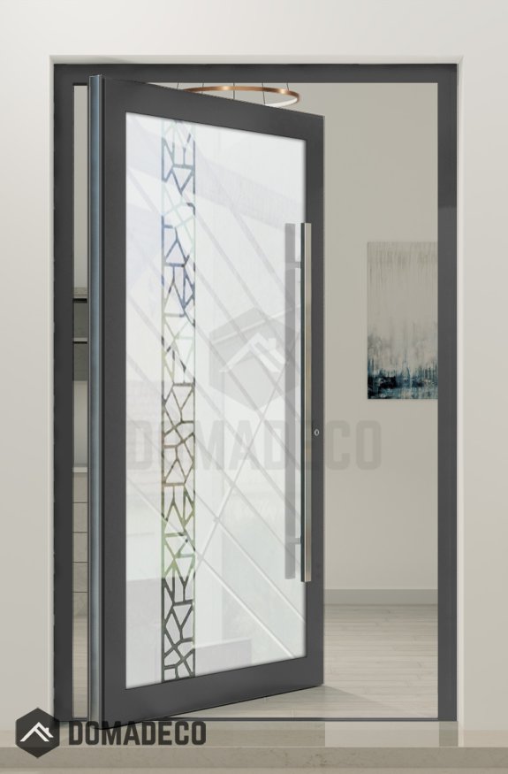 PIVOT Glass S21 – Aluminium-Drehtür mit mattierter Oberfläche und transparentem Motiv