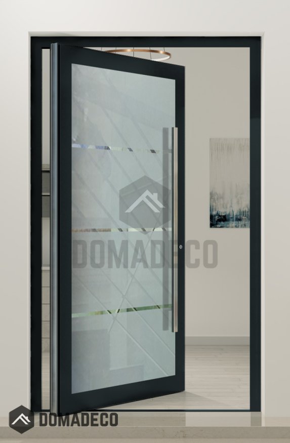 PIVOT Glass S3 - aluminium frosted pivot door with three transparent stripe