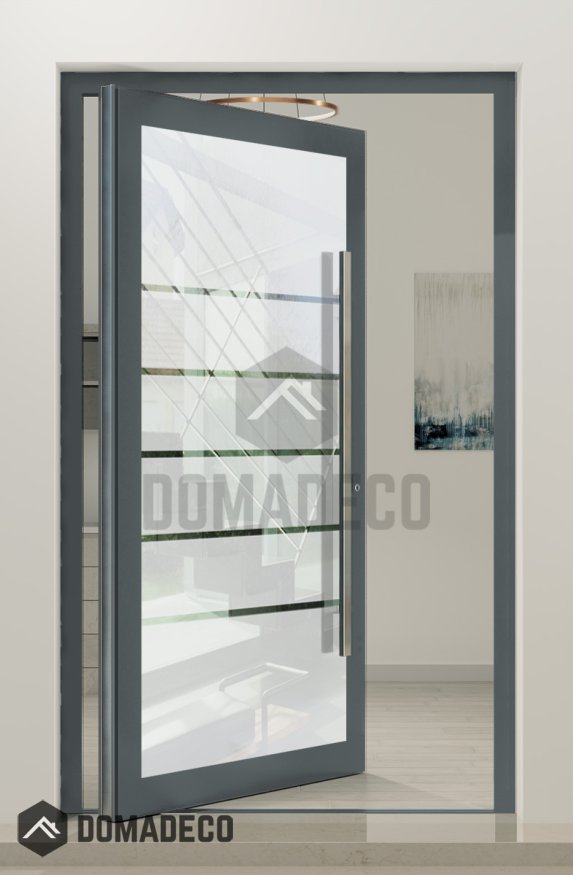 PIVOT Glass S5 - Aluminium mattierte Drehtür mit fünf transparenten Streifen