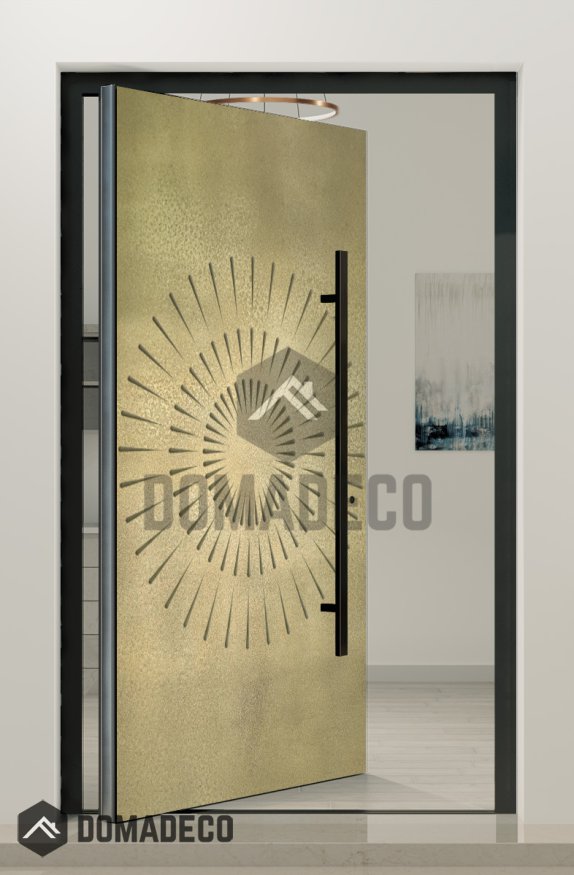 PIVOT M12 - Tür mit Gelbmessingtextur aus gefrästem Metall