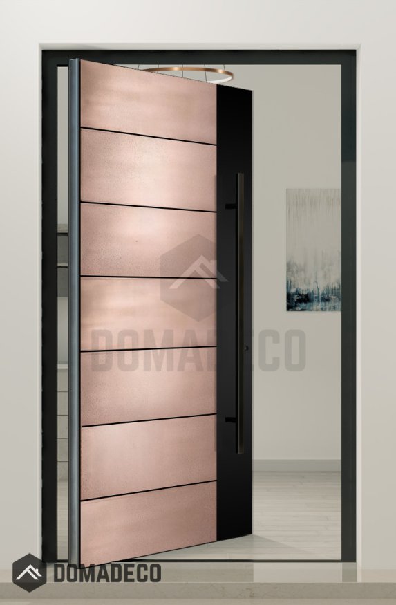 PIVOT M15 - Aluminium-Schwenktür mit Kupfertextur aus gefrästem Metall