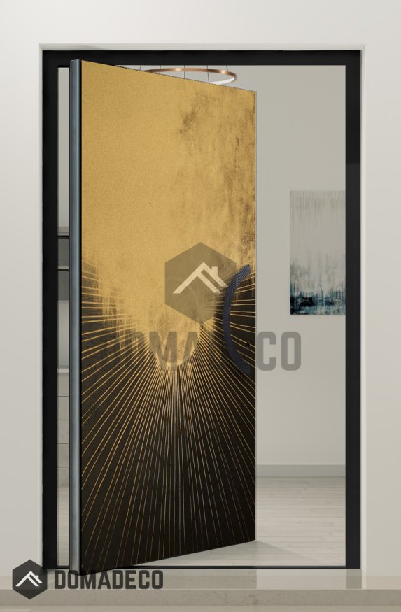 PIVOT M20 - Aluminium-Schwenktür mit goldener Textur aus gefrästem Metall