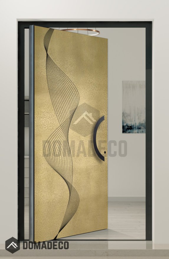 PIVOT M26 - Aluminium-Drehtür mit Tür mit Gelbmessing-Struktur aus gefrästem Metall