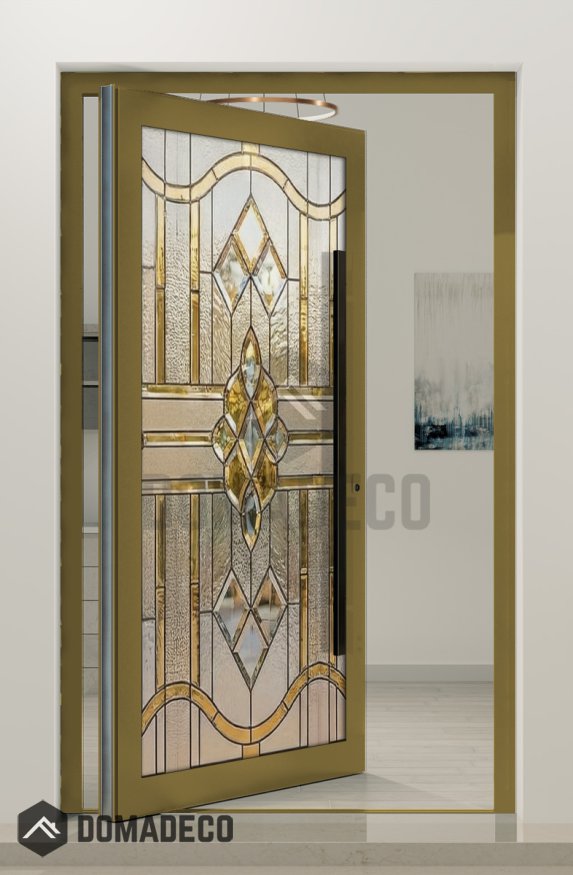 PIVOT SG4 – Außen-Drehtür aus Aluminium mit Buntglas
