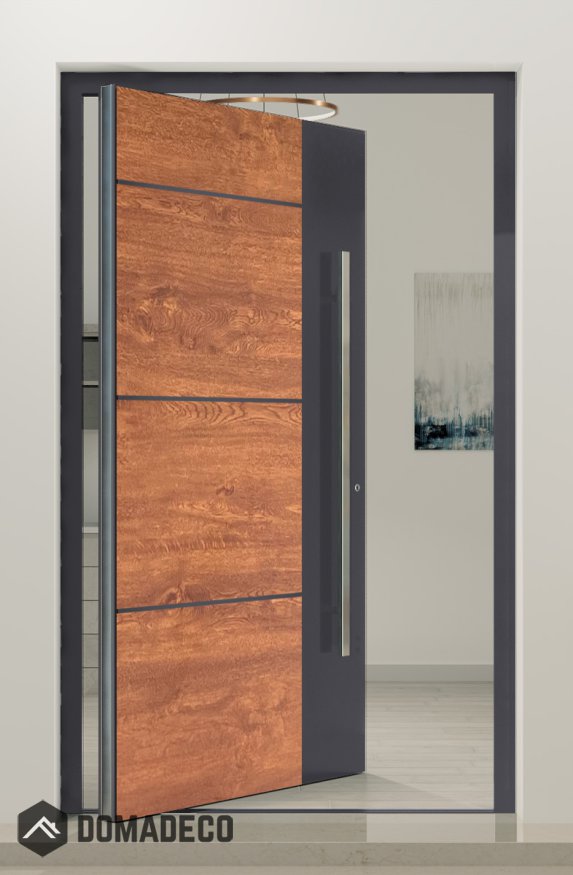PIVOT V36 – Aluminium-Drehtür mit Holzdekor