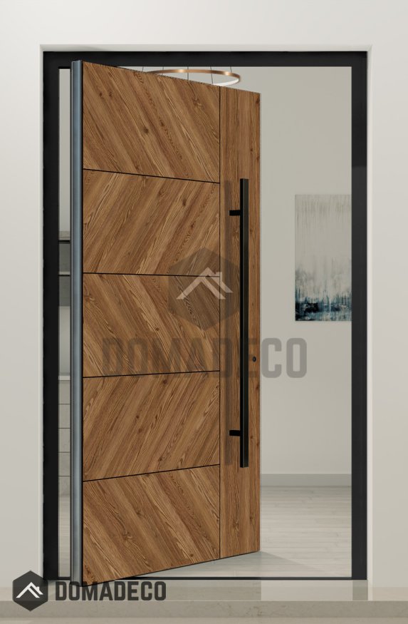 PIVOT WOODLINE 4 – Drehtür mit Abdeckung Creek Larch Hochdrucklaminat in Holzoptik