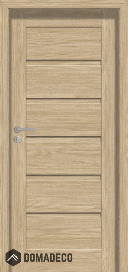 Die Tür besteht aus einem hochwertigen MDF-Schienen- und Pfostenpaket, das mit der Oberfläche ECO TOP, SILKSTONE mit vertikaler Holzmaserung verkleidet ist. Die Paneele haben eine horizontale Holzmaserung. Die Muster W03, W07, W08 mit horizontaler und W05, W06 mit vertikaler Holzmaserung.