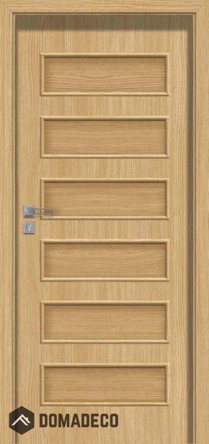 Die Tür besteht aus einer Holzleiste und einem Holzsteg, die mit zwei bündigen HDF-Platten belegt sind, die mit einer ECO TOP, HIGH TOP-Oberfläche versehen sind. Der Kern besteht aus einer wabenförmigen Stabilisierungsschicht.