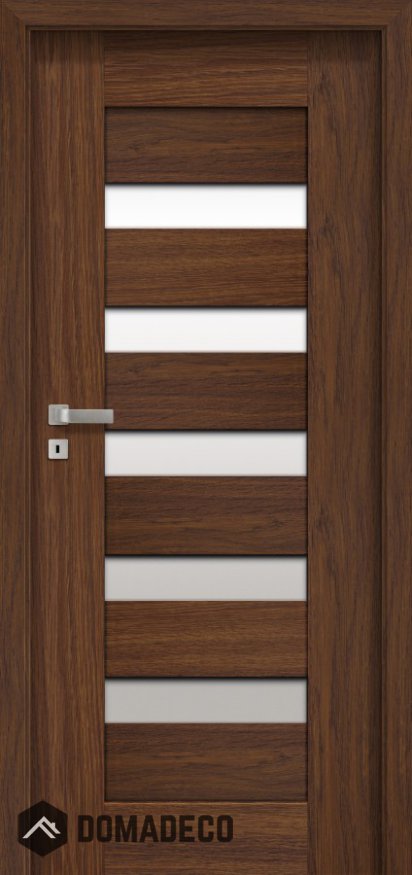 Die Tür besteht aus einer Holzschiene und einem Holzsteg, die mit zwei bündig abschließenden HDF-Platten mit der Oberflächenbehandlung LAMISTONE CPL, SILKSTONE überzogen sind. Die Holzmaserung auf dem Holzschienen- und Pfostenpaket ist vertikal. Bei Paneelen und Querschienen kann sie horizontal (W02-W02A, W03-W03A) oder vertikal (W00, W04) sein.
