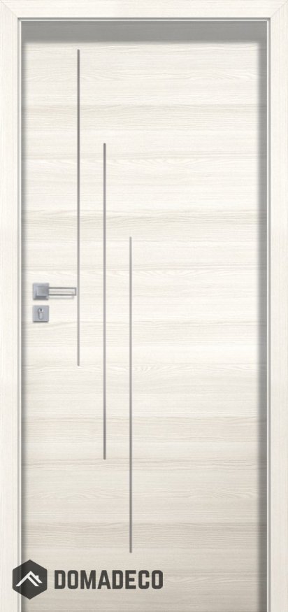 Die Tür besteht aus einer Holzschiene und einem Holzsteg, die mit zwei bündig abschließenden HDF-Platten mit LAMISTONE CPL, SILKSTONE oder furnierter Oberfläche belegt sind.
