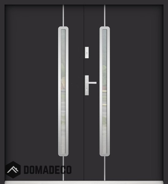 Die Türen bestehen aus Edelstahl. Im Inneren ist es mit PUR-Polyurethanschaum und Holz gefüllt. Die Türblattdicke beträgt 55 mm. Doppeldichtungssystem - Eine Dichtung befindet sich am unteren Rand des Rahmens und die andere im Lagerteil des Türblatts. Sie reduzieren Vibrationen und schützen Ihr Zuhause vor Wärmeverlust. Sie ändern ihre Lautstärke nicht unter dem Einfluss von Wetterbedingungen. Der Türrahmen hat einbruchhemmende Verstärkungen in den Scharnierteilen und Verriegelungspunkten.