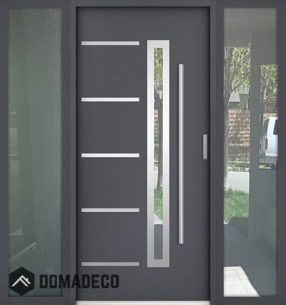 Die Türen bestehen aus Edelstahl. Im Inneren ist es mit PUR-Polyurethanschaum und Holz gefüllt. Die Türblattdicke beträgt 73 mm. Doppeldichtungssystem - Eine Dichtung befindet sich am unteren Rand des Rahmens und die andere im Lagerteil des Türblatts. Sie reduzieren Vibrationen und schützen Ihr Zuhause vor Wärmeverlust. Sie ändern ihre Lautstärke nicht unter dem Einfluss von Wetterbedingungen. Der Türrahmen hat einbruchhemmende Verstärkungen in den Scharnierteilen und Verriegelungspunkten.