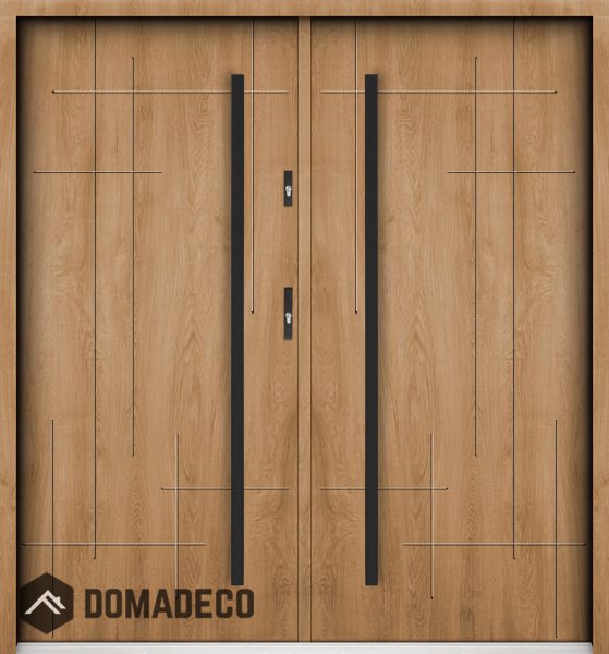 Die Türen bestehen aus Edelstahl. Im Inneren ist es mit PUR-Polyurethanschaum und Holz gefüllt. Die Türblattdicke beträgt 55 mm. Doppeldichtungssystem - Eine Dichtung befindet sich am unteren Rand des Rahmens und die andere im Lagerteil des Türblatts. Sie reduzieren Vibrationen und schützen Ihr Zuhause vor Wärmeverlust. Sie ändern ihre Lautstärke nicht unter dem Einfluss von Wetterbedingungen. Der Türrahmen hat einbruchhemmende Verstärkungen in den Scharnierteilen und Verriegelungspunkten.