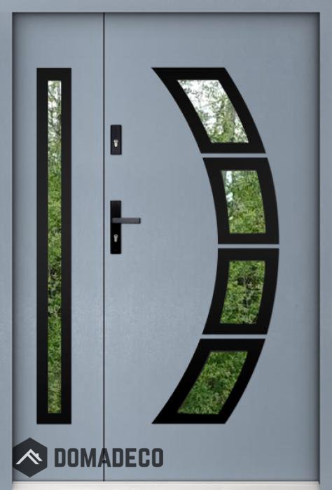 Die Türen bestehen aus Edelstahl. Im Inneren ist es mit PUR-Polyurethanschaum und Holz gefüllt. Die Türblattdicke beträgt 55 mm. Doppeldichtungssystem - Eine Dichtung befindet sich am unteren Rand des Rahmens und die andere im Lagerteil des Türblatts. Sie reduzieren Vibrationen und schützen Ihr Zuhause vor Wärmeverlust. Sie ändern ihre Lautstärke nicht unter dem Einfluss von Wetterbedingungen. Der Türrahmen hat einbruchhemmende Verstärkungen in den Scharnierteilen und Verriegelungspunkten.
