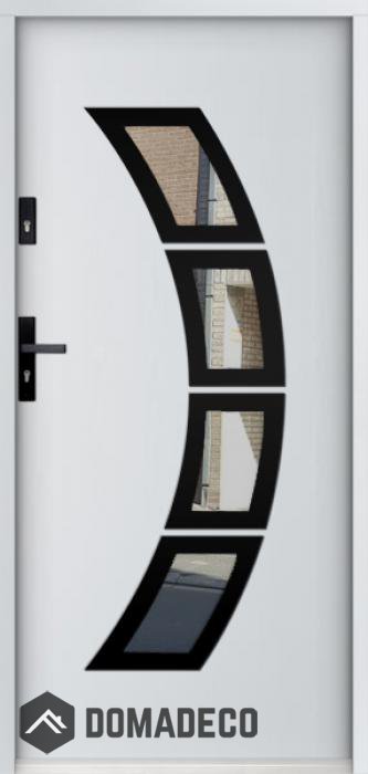 Die Türen bestehen aus Edelstahl. Im Inneren ist es mit PUR-Polyurethanschaum und Holz gefüllt. Die Türblattdicke beträgt 55 mm. Doppeldichtungssystem - Eine Dichtung befindet sich am unteren Rand des Rahmens und die andere im Lagerteil des Türblatts. Sie reduzieren Vibrationen und schützen Ihr Zuhause vor Wärmeverlust. Sie ändern ihre Lautstärke nicht unter dem Einfluss von Wetterbedingungen. Der Türrahmen hat einbruchhemmende Verstärkungen in den Scharnierteilen und Verriegelungspunkten.