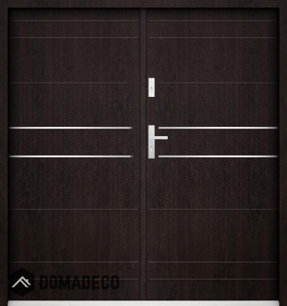 Die Türen bestehen aus Edelstahl. Im Inneren ist es mit PUR-Polyurethanschaum und Holz gefüllt. Die Türblattdicke beträgt 55 mm. Doppeldichtungssystem - Eine Dichtung befindet sich am unteren Rand des Rahmens und die andere im Lagerteil des Türblatts. Sie reduzieren Vibrationen und schützen Ihr Zuhause vor Wärmeverlust. Sie ändern ihre Lautstärke nicht unter dem Einfluss von Wetterbedingungen. Der Türrahmen hat einbruchhemmende Verstärkungen in den Scharnierteilen und Verriegelungspunkten.