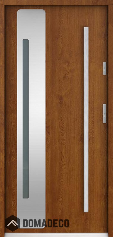Die Türen bestehen aus Edelstahl. Im Inneren ist es mit PUR-Polyurethanschaum und Holz gefüllt. Die Türblattdicke beträgt 55 mm. Doppeldichtungssystem - Eine Dichtung befindet sich am unteren Rand des Rahmens und die andere im Lagerteil des Türblatts. Sie reduzieren Vibrationen und schützen Ihr Zuhause vor Wärmeverlust. Sie ändern ihre Lautstärke nicht unter dem Einfluss von Wetterbedingungen. Der Türrahmen hat einbruchhemmende Verstärkungen in den Scharnierteilen und Verriegelungspunkten.